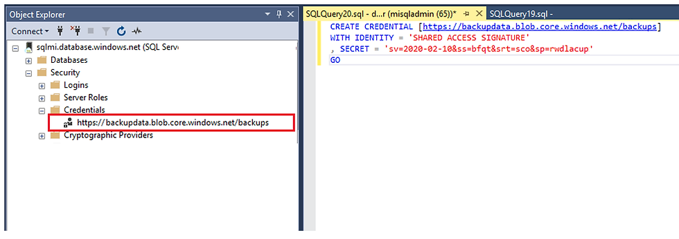 Once the SAS URI is generated, Azure SQL MI would require the same to connect with the Azure Storage Account.